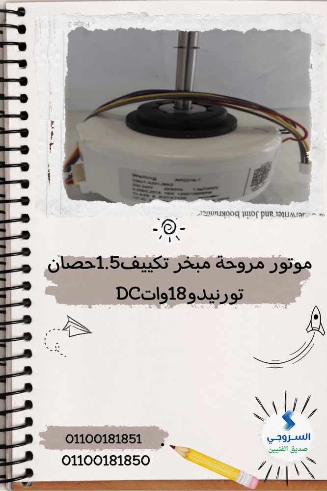 موتور مروحة مبخر تكييف 1.5 حصان تورنيدو 18 وات DC