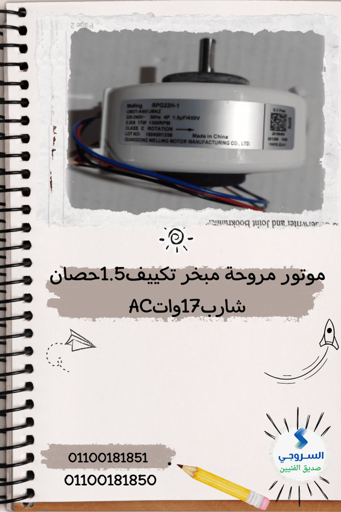 موتور مروحة مبخر تكييف 1.5 حصان شارب 17 وات AC